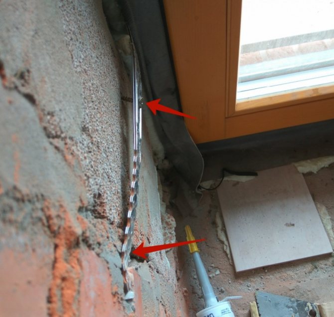 L'angle de courbure de la plaque est sélectionné localement et dépend de la taille de l'espace de montage. Les plaques sont fixées aux blocs de fenêtres avant leur installation dans les ouvertures à l'aide de vis de construction d'un diamètre d'au moins 5 mm et d'une longueur d'au moins 40 mm.Les plaques d'ancrage flexibles sont fixées à la couche intérieure d'une paroi multicouche avec des chevilles en plastique avec des vis de verrouillage (au moins 2 points de fixation par plaque) d'un diamètre d'au moins 6 mm et d'une longueur d'au moins 50 mm. Une des conditions d'utilisation des plaques de montage est la finition ultérieure des pentes de l'ouverture de la fenêtre par plâtrage ou bardage «sec».