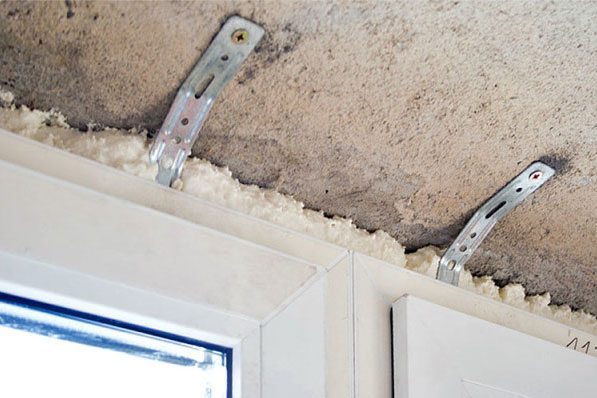 Pour le bloc de fenêtre, la fixation au moyen de plaques est la plus sûre et les pièces métalliques peuvent être cachées pendant le processus de finition.