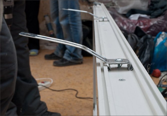 La rigidité de la fixation avec n'importe quelle barre métallique est légèrement inférieure à celle des ancrages. Si la fenêtre est aveugle, seules les plaques suffisent. Lors de l'installation d'un grand produit avec des châssis lourds, une compensation de charge uniforme est nécessaire, vous devrez donc non seulement insérer la pièce dans la rainure et la mettre en place, mais également vous assurer avec une vis autotaraudeuse, qui devrait pénétrer profondément dans le profil du cadre. Les attaches sur les côtés sont montées à une distance de 25 cm des coins, dans les parties supérieure et inférieure, et en haut, la connexion est placée strictement au milieu