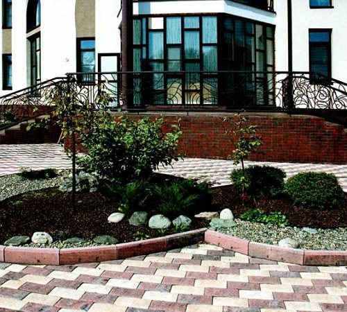Devant le mur avant, des plantes rabougries sont plantées, qui reçoivent la forme désirée par bouture. Ces plantes conviennent également pour décorer le chemin menant à l'entrée. Dans ce cas, ils agiront comme une bordure.