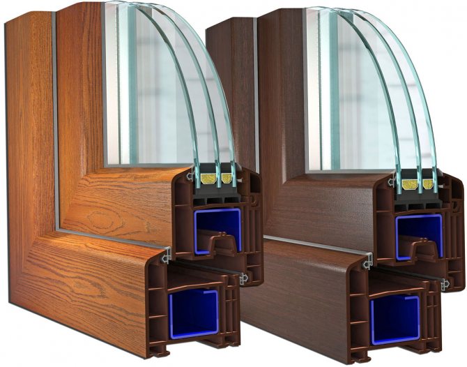 Les fenêtres en plastique, stratifiées sous un arbre, ne diffèrent pas par leurs propriétés du profil standard. Ils sont également hermétiques et retiennent bien la chaleur.