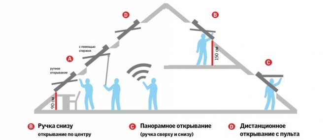 Plus la fenêtre de toit est installée haut, plus la lumière du soleil pénètre dans la pièce. Il ne sera pas difficile à utiliser, car de nombreux modèles ont des poignées installées par le bas.