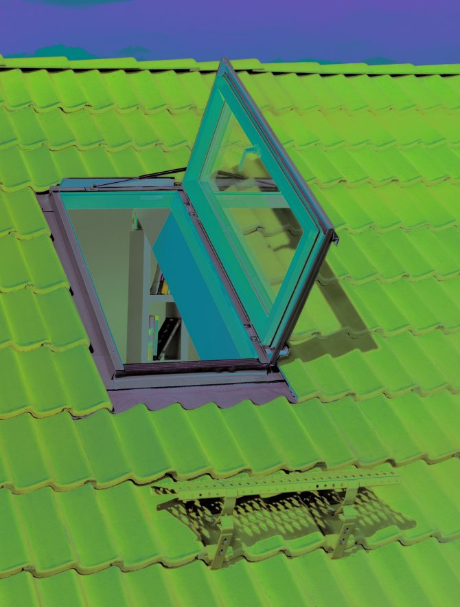 Il est nécessaire non seulement en cas d'incendie, mais également pour la réparation et l'entretien du toit. Les fenêtres de grenier modernes ont une fonction spéciale qui leur permet d'être utilisées comme sortie sur le toit. Ces fenêtres s'ouvrent comme des portes. La rotation s'effectue autour de l'axe latéral. L'utilisation de ressorts à gaz facilite l'ouverture et donne accès à: