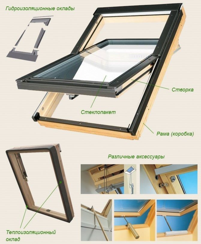 - choisissez une fenêtre en fonction de la disposition du toit: par exemple, en utilisant des structures hautes pour un toit plat.