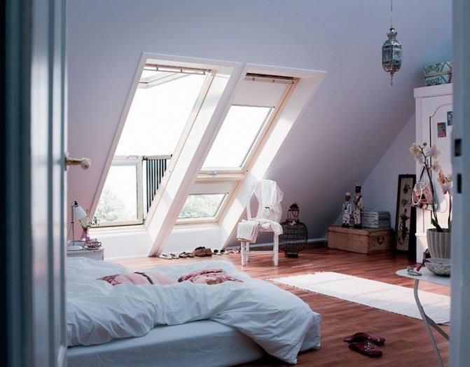 Pour obtenir un éclairage le plus lumineux possible pendant la journée, installez 2 ou 3 fenêtres dans la même pièce, en les plaçant sur les côtés opposés du toit. L'installation d'une seule mais grande fenêtre ne permettra pas d'obtenir un tel effet, car sa surface sera égale à la somme des surfaces de plusieurs composants. Les puits de lumière avec une grande surface rendront la pièce confortable et se rempliront uniformément de lumière. La distance entre les fenêtres et la largeur des structures est déterminée par la distance entre les chevrons.