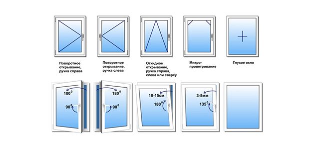 Une fenêtre pivot est marquée d'un rectangle, dans lequel un coin de flèche horizontal est dessiné. La direction de la flèche pointe vers le côté où se trouve la poignée. En conséquence, la partie la plus large du coin indiquera le côté où se trouvent les charnières. Si un angle est dessiné dans un rectangle non pas horizontal, mais vertical, alors nous parlons d'une fenêtre à charnière. En règle générale, la partie pointue du coin du volet est orientée vers le haut, ce qui signifie que la fenêtre s'ouvre par le haut. Parfois, des arcs sont dessinés dans les coins supérieurs du rectangle de la feuille de mesure, ce qui peut signifier que l'ouvrant est équipé d'un système de micro-ventilation. Si une figure est dessinée dans un rectangle qui ressemble à une étoile à cinq branches inachevée ou à la lettre A, nous parlons d'une ceinture pivotante. En regardant de plus près, vous remarquerez qu'il ne s'agit pas du tout d'une étoile, mais simplement de deux angles d'orientation verticale et horizontale dessinés dans un rectangle.