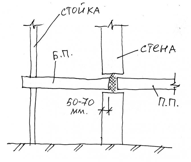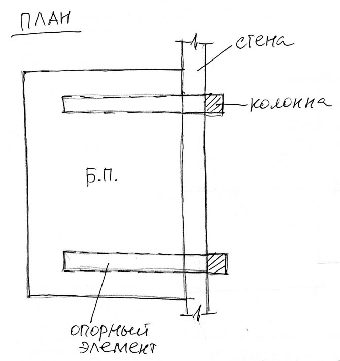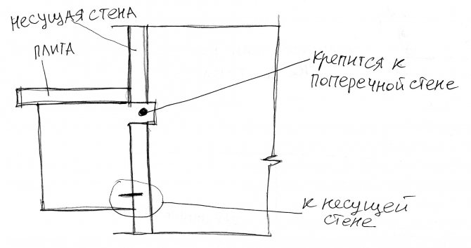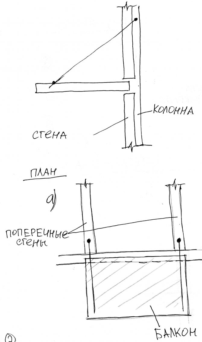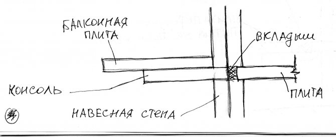 2) Murs saillants. La dalle de la loggia repose sur le prolongement du mur porteur transversal, et les murs de la loggia sont articulés, fixés aux murs porteurs transversaux (bord supérieur), et le bord inférieur est fixé au mur à l'aide de pièces encastrées.