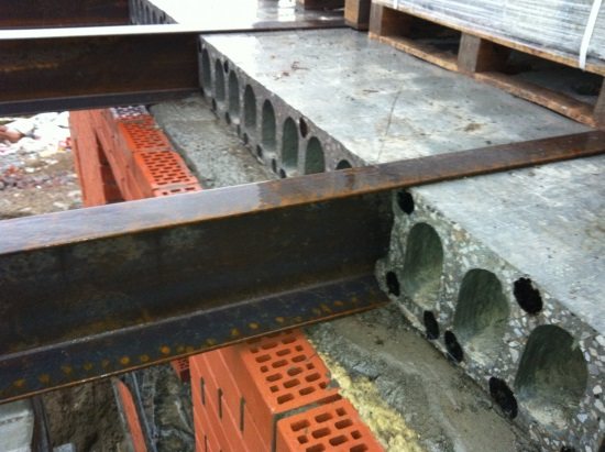 - Suspendu (repose sur les consoles de console pincées dans les murs porteurs transversaux)