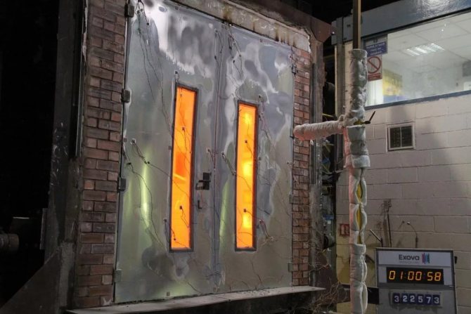 GOST 53307 2009 contient une description de la méthode par laquelle la porte est testée pour le seuil de résistance au feu.