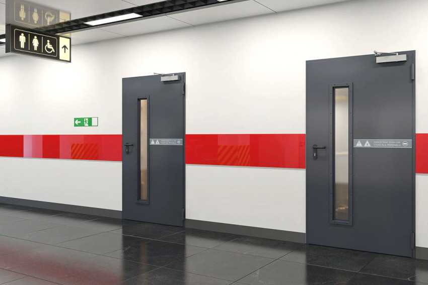 La dernière étape est l'installation d'un vantail anti-incendie. Pour le sélectionner, vous devez vous référer aux dispositions de SNiP et GOST, qui indiquent quelle classe de portes est installée dans certaines conditions. Les charnières de porte doivent assurer une ouverture totale du vantail de la porte et la largeur entre le cadre et le vantail ne doit pas dépasser 3 mm. La structure de protection incendie est équipée d'un ferme-porte.