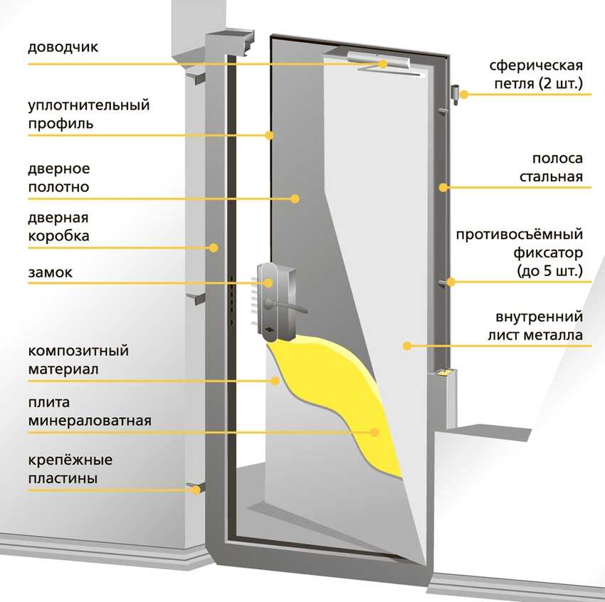 - portes standard. Ils sont équipés de serrures de troisième classe (non inférieures) et de goupilles anti-amovibles ;