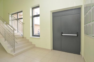 - Les bâtiments, dont la hauteur atteint 50 m et ont une superficie d'appartements jusqu'à 500 m2. m sur un étage, doit avoir une sortie par le hall ou le vestibule. Le vantail de la porte, monté dans de tels endroits ou sur l'escalier, doit être résistant au feu jusqu'à 30 minutes.