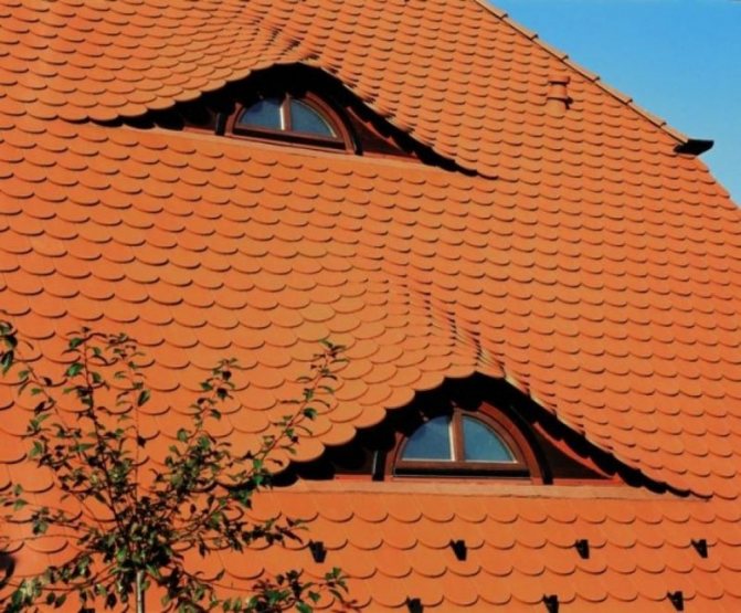 Le toit de la lucarne descend jusqu'au toit principal de la structure jusqu'à la gouttière, et l'imperméabilisation de la zone d'amarrage des murs sur les côtés n'est pas requise. Cela facilite l'étanchéité de la fenêtre de toit du grenier et de toute la surface du bâtiment.