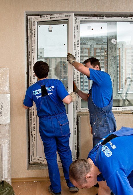 Si des produits coulissants sont installés, il est nécessaire de fixer solidement les profilés de guidage. Les vides qui restent doivent être comblés avec une barre d'assemblage. Ensuite, l'ouvrant est mis sur les charnières. Dans le dernier tour, les raccords sont installés et la poignée est ajustée.