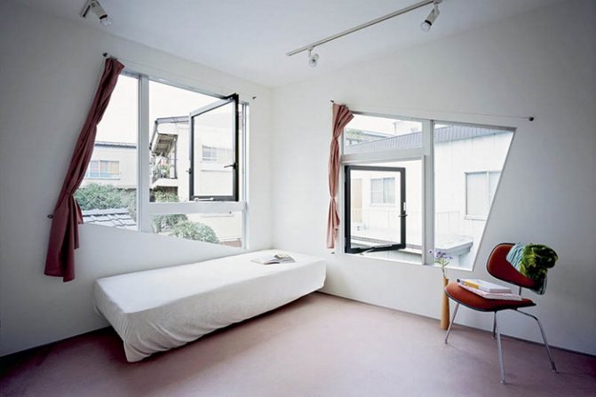 Les créatifs aiment beaucoup les fenêtres trapézoïdales non standard - les artistes, les sculpteurs et les designers en décorent souvent leurs studios.