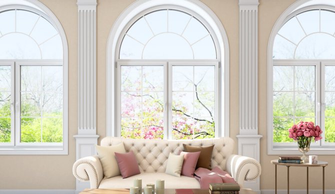 Les ouvertures de fenêtres dans les maisons privées et dans les bâtiments publics sont souvent recouvertes de structures au sommet arrondi. Après les fenêtres rectangulaires standard, ce type est le deuxième plus populaire parmi les acheteurs.