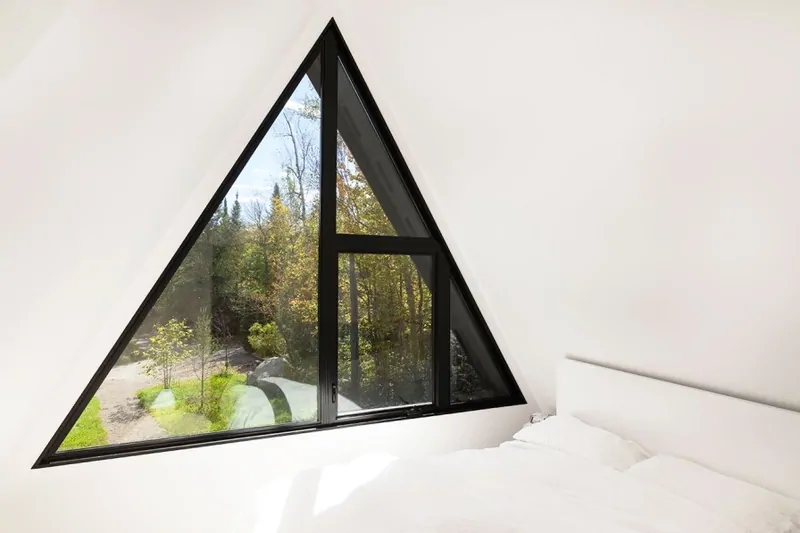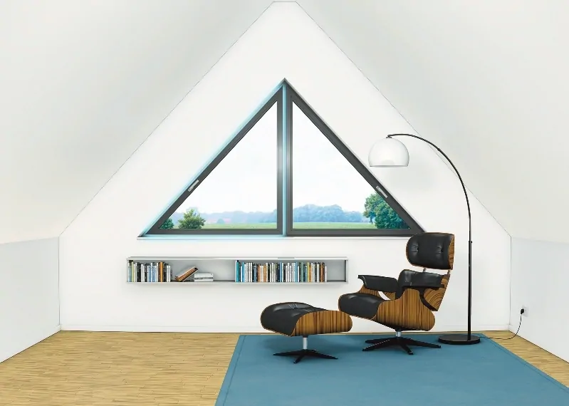 Les fenêtres triangulaires en plastique ou en bois s'intègrent harmonieusement dans les bâtiments aux toits pointus. Il existe une limitation pour les profils de ces produits - tous leurs angles doivent avoir une inclinaison de plus de 30 degrés. Le reste des paramètres peut être n'importe quoi.