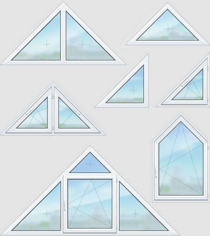 La plupart des fabricants proposent aux clients des fenêtres triangulaires de deux types : avec deux côtés identiques ou avec un angle droit (90 degrés). Chacune des variétés est conçue pour être installée dans des emplacements spécifiques :