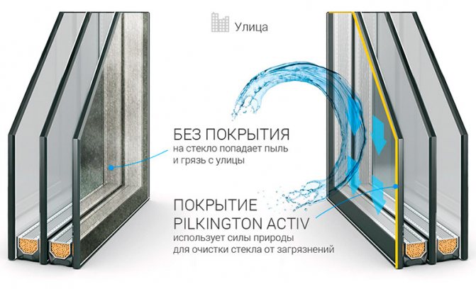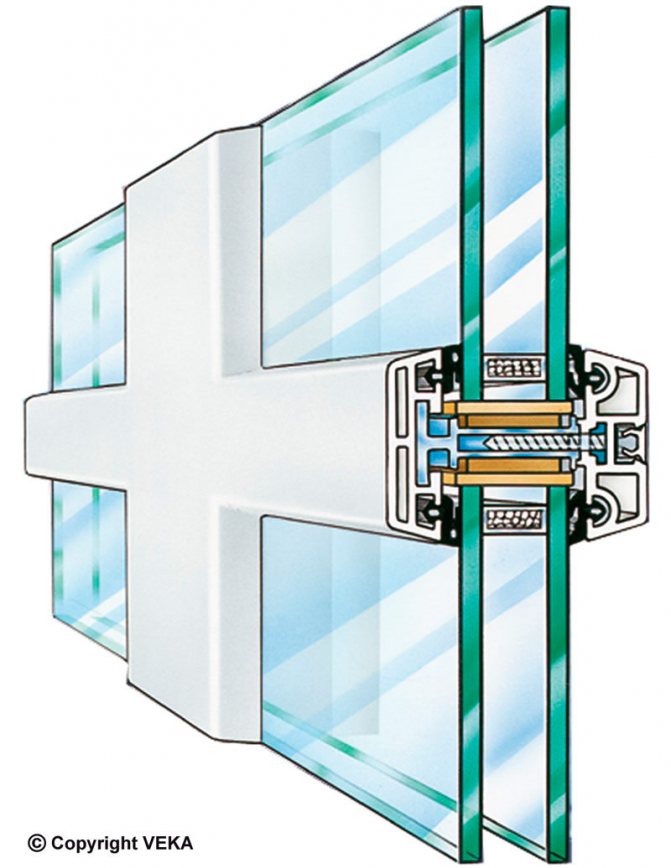 La chambre à air peut être remplie d'un gaz inerte pour augmenter les propriétés d'isolation thermique ou être utilisée pour l'installation de barres transversales décoratives - shpross ou stores pare-soleil.