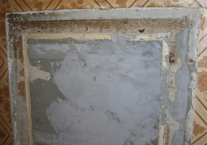 Une autre méthode pour fermer hermétiquement l'ouverture consiste à la sceller avec du mortier de ciment. Pour cette méthode, vous n'avez pas à démonter le cadre - il vous suffit de retirer les plateaux et le verre. Un cadre en aggloméré est fixé au cadre restant et un treillis en plâtre est monté dessus. Les artisans expérimentés recommandent de faire un coulis plus épais que d'habitude et d'ajouter un peu de gypse pour une prise rapide. La solution est appliquée par la méthode du «lancer par petites portions, pour obtenir le résultat, il faudra au moins 5-6 étapes. La couche séchée de mortier de ciment est nivelée avec un flotteur, puis recouverte d'une solution diluée avec de l'eau, et la zone est à nouveau traitée avec un flotteur. Le résultat est une surface parfaitement lisse qui restera cachée sous le matériau de finition.