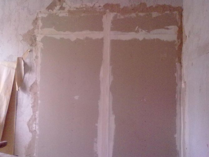 Coudre l'ouverture avec des cloisons sèches est un autre moyen facile d'améliorer l'apparence de vos murs. Vous ne pouvez pas attacher quoi que ce soit de lourd à ce matériau. À cet effet, choisissez une cloison sèche résistante à l'humidité. Il est attaché à des profilés métalliques situés le long du périmètre de l'ancienne fenêtre. Pour l'isolation phonique, l'espace entre les feuilles est rempli de laine minérale.