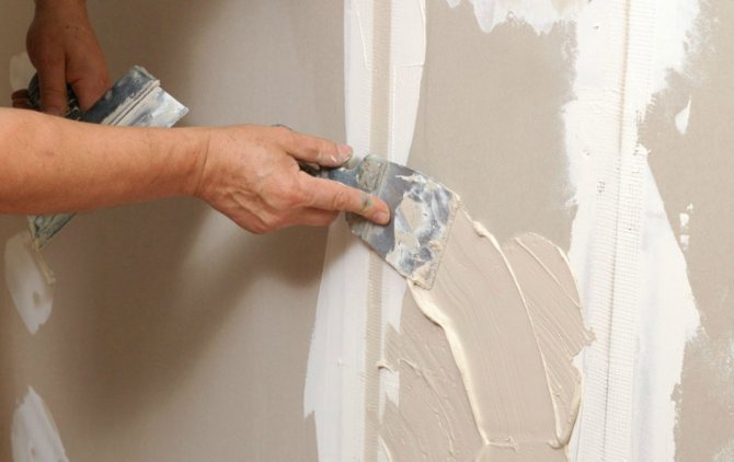 Après quelques jours, lorsque le plâtre est sec, un plâtre de gypse est appliqué sur sa surface. Le mastic est réalisé comme suit: une petite partie du mélange de gypse est faite (il est très important de ne pas faire un grand lot du mélange de gypse - le matériau durcit rapidement), une bande uniforme de mélange de gypse est appliquée sur la lame de une grande spatule avec une petite spatule, puis j'appuie la grande spatule contre la surface plâtrée à un angle de 30-35 ° et j'étire d'abord la spatule de bas en haut, puis j'étire le mélange horizontalement.