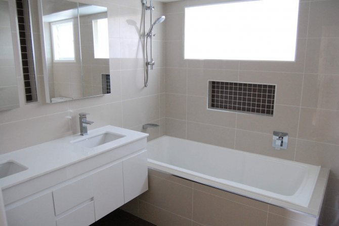 Il est nécessaire d'effectuer des réparations dans une petite salle de bain de manière à ce que chaque centimètre de la zone soit utilisé avec avantage. Il n'est pas nécessaire de poser complètement une fenêtre inutile. Une baignoire peut avoir une niche attrayante. Dans la cuisine, l'ouverture est posée avec des plaques de plâtre. Dans la salle de bain, les carreaux sont posés sur le mortier de ciment, comme sur le reste des murs. Si vous le souhaitez, la niche peut être agrandie en démontant une section supplémentaire du mur. En conséquence, il y aura suffisamment d'espace de stockage, ce qui est très important pour une si petite pièce. Si vous le souhaitez, la niche peut être équipée d'un éclairage. Cette solution ajoutera de la lumière et de la sophistication à la salle de bain.