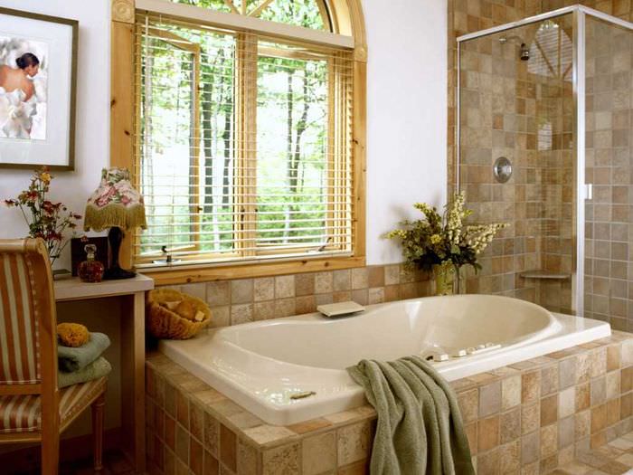 - baignoire près de la fenêtre - il est recommandé d'isoler l'ouverture de la fenêtre et le mur adjacent afin qu'il n'y ait pas de courants d'air et que la température reste toujours confortable lors de la prise de l'eau.