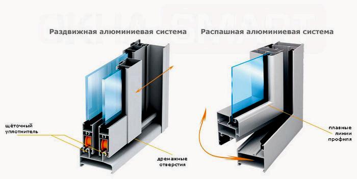 Toute conception a un cadre et un verre (ou une unité en verre). Les structures pour les structures en aluminium sont fabriquées à partir d'un alliage complexe, et d'autres éléments sont ajoutés, ce qui permettre au produit fini d'être plus solide... Habituellement, ces substances sont le magnésium et le silicium.