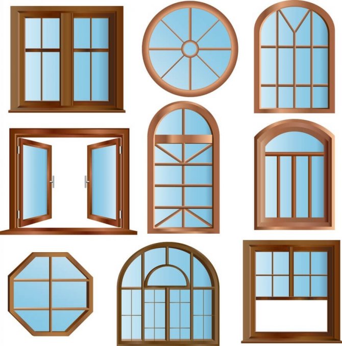 En plus des paramètres de base, les fenêtres métal-plastique diffèrent par la forme et la couleur. En plus des formes rectangulaires habituelles, des formes rondes, trapézoïdales, triangulaires et autres exotiques peuvent être fabriquées sur commande.
