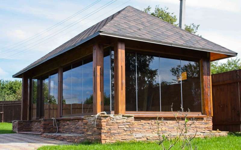 Une option de chalet d'été populaire consiste à recouvrir le bâtiment de fenêtres en PVC souple, mais il ne sera possible de rester à l'intérieur que pendant la saison chaude.