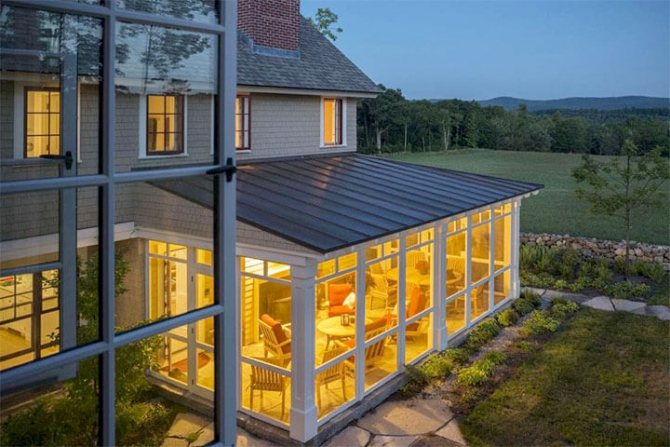 Selon la fréquence de fonctionnement de la véranda, un vitrage froid ou chaud est utilisé. Dans le premier cas, la température de l'air dans la pièce ne différera de la rue que de 50 ° C. Pour la résidence permanente, le second type est mieux adapté.