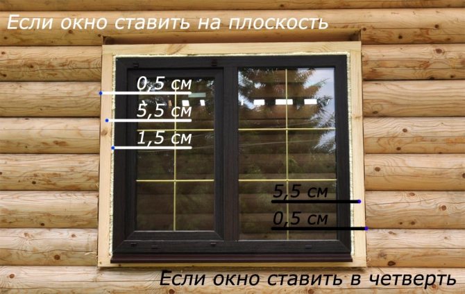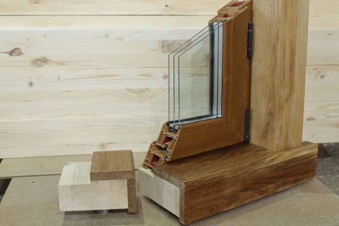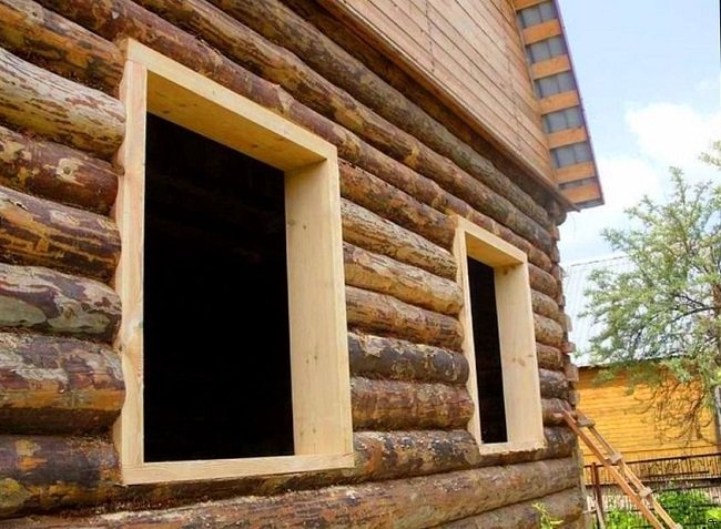 De plus, avec une faible épaisseur des murs d'une maison en bois, en approfondissant la fenêtre dans l'ouverture, nous devrons couper le rebord de fenêtre déjà étroit. Et le rebord qui se forme à l'extérieur de l'ouverture devra en outre être fermé et scellé.
