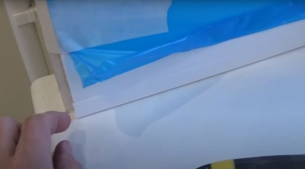 Tout d'abord, vous devez coller les charnières sur les fenêtres avec du ruban adhésif. Si cela n'est pas fait, il sera alors assez problématique d'enlever le plâtre séché plus tard.