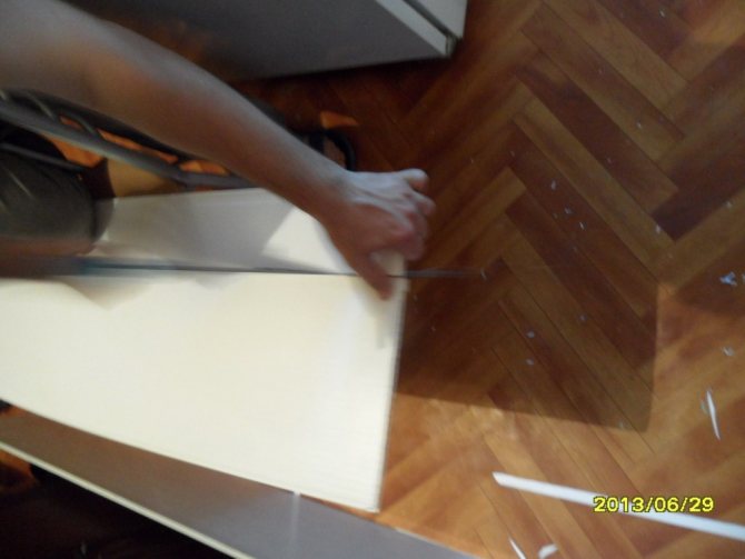 Les bords du profil en forme de F sont coupés avec un couteau de bureau, comme indiqué sur la photo ci-dessous.