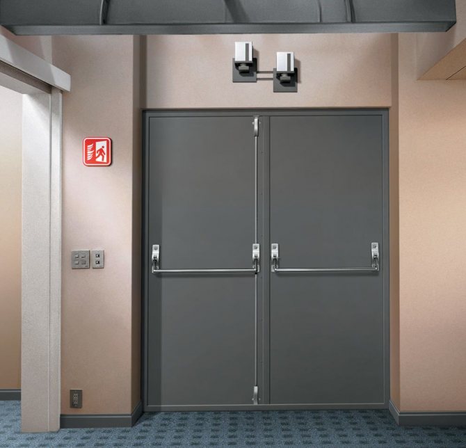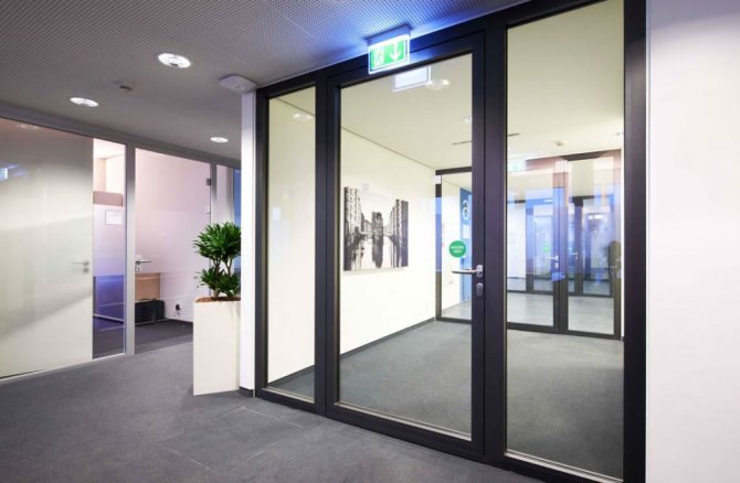 Les portes qui répondent aux exigences de sécurité incendie peuvent être fabriquées non seulement en acier, mais également en aluminium - en remplissant les cadres des feuilles de verre résistant au feu. Dans ce cas, ils offrent non seulement la possibilité d'une évacuation sans entrave des personnes en cas de force majeure, mais complètent également parfaitement les intérieurs et extérieurs des bâtiments.
