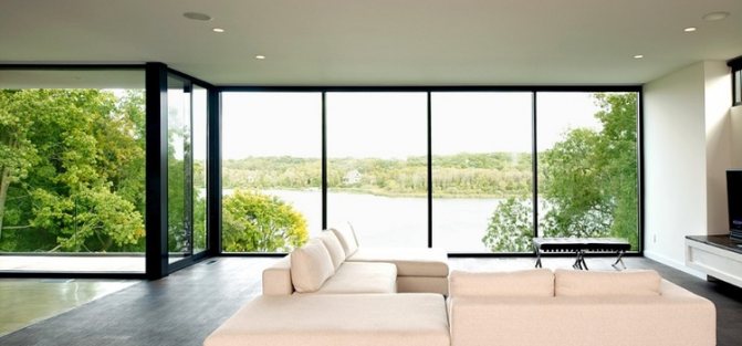 Les fenêtres panoramiques sont en demande et se trouvent à la fois dans les appartements et dans le secteur privé. Dans ce dernier, ces grandes fenêtres sont particulièrement belles. La pièce avec des baies vitrées est claire et semble plus spacieuse. Nous parlerons de l'installation sur les balcons et loggias la prochaine fois. Aujourd'hui, nous traiterons de l'installation dans les chalets et les maisons.