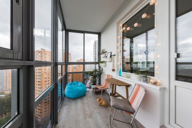 Lorsque la saison froide commence, les ouvertures des fenêtres s'embueront en raison de la différence de température à l'intérieur et à l'extérieur. Pour éviter la situation, ils installent des convertisseurs chauds, montent un plancher chauffant électriquement. À ces fins, vous devrez dépenser beaucoup de ressources financières, mais les dépenses seront payantes avec le confort d'être sur un tel balcon.