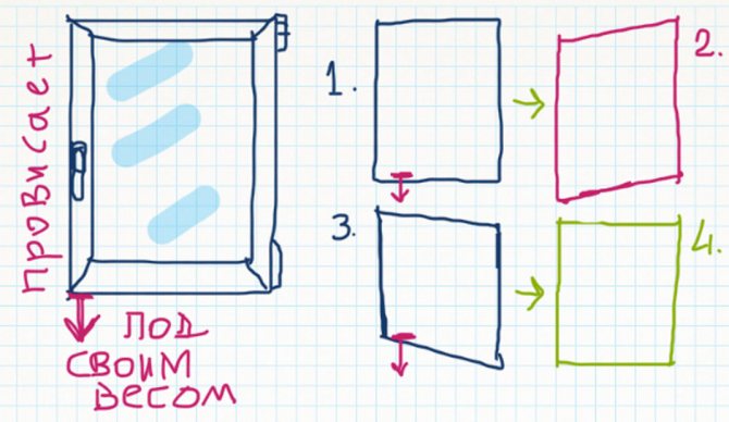 Si le problème d'affaissement dû à une géométrie cassée est confirmé, il peut être réparé grâce au bloc de verre du châssis lui-même. Il suffit de remettre la ceinture à la bonne forme. Il est recommandé que des spécialistes effectuent des travaux pour corriger la géométrie de l'ouvrant.