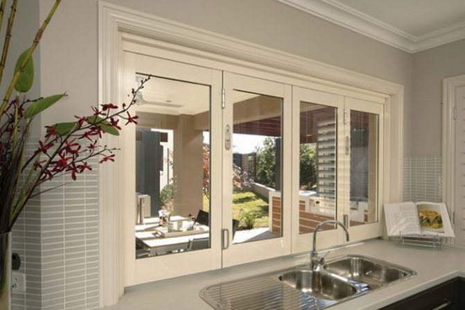 Indépendamment de la présence ou de l'absence d'une hotte dans la cuisine, la fenêtre doit offrir la possibilité d'une ventilation complète de la pièce, par conséquent, l'option d'installer un modèle sourd n'est même pas envisagée. Aujourd'hui, les clients ont le choix entre trois méthodes principales pour compléter les fenêtres: