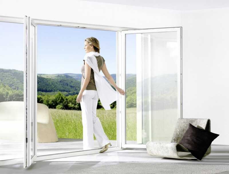 - Avec la méthode d'ouverture en éventail. Un autre nom pour ce type est le plastique pliant. Ce principe fonctionne comme une fenêtre, lorsque le plan pivote horizontalement (c'est la principale différence par rapport à la vue précédente). Le mécanisme pivotant du profilé est difficile à fabriquer, mais c'est le plus pratique et le plus demandé sur le marché des profilés en plastique. Les volets peuvent monter ou descendre.