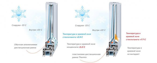 Si le verre n'est pas trop mince, il y a une couche d'air (ou airless, gaz dans les fenêtres à double vitrage) suffisante entre les fenêtres, il n'y a pas de fissures et de fentes dans les cadres - l'intérieur de la fenêtre a une température proche de la pièce Température. En conséquence, il ne s'embue pas.