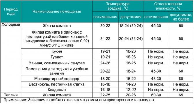 Tableau 2. Indicateurs standard de température et d'humidité dans les pièces.