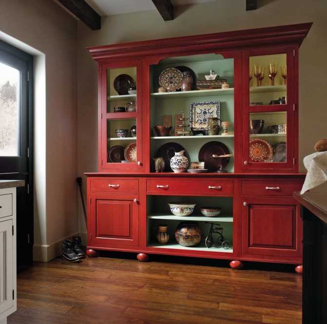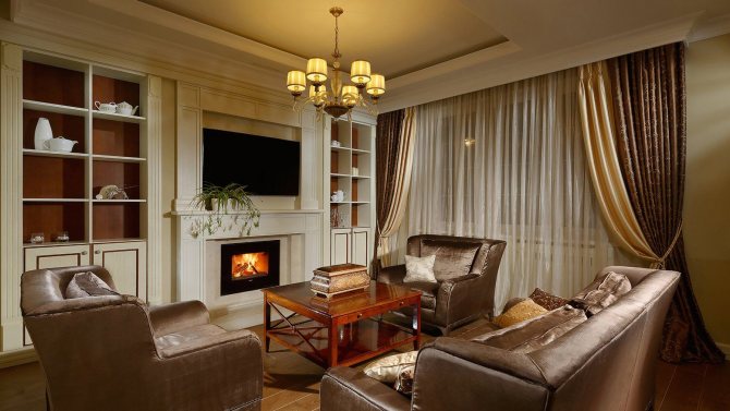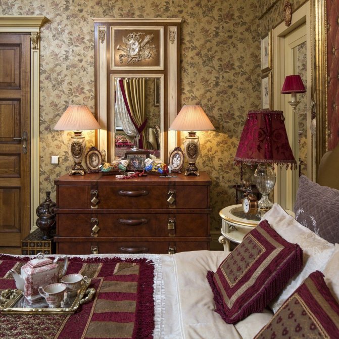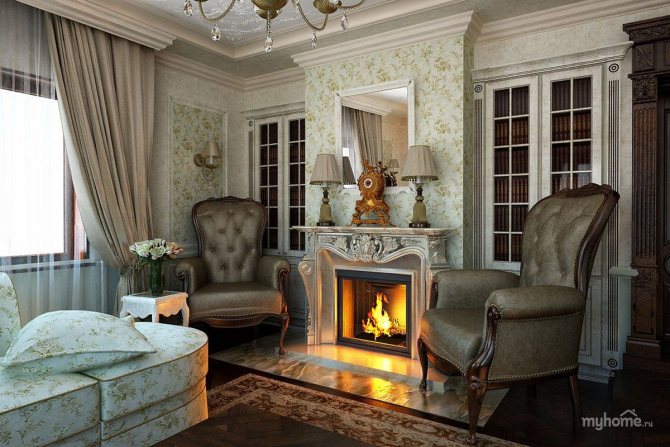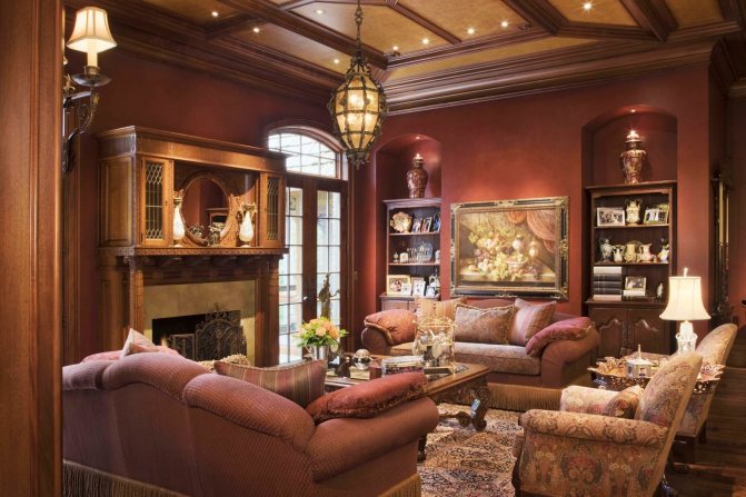 Ce style garde soigneusement les photos des membres de la famille sur la cheminée, et le service familial et une collection de figurines en porcelaine se trouvent derrière les portes des vitrines.