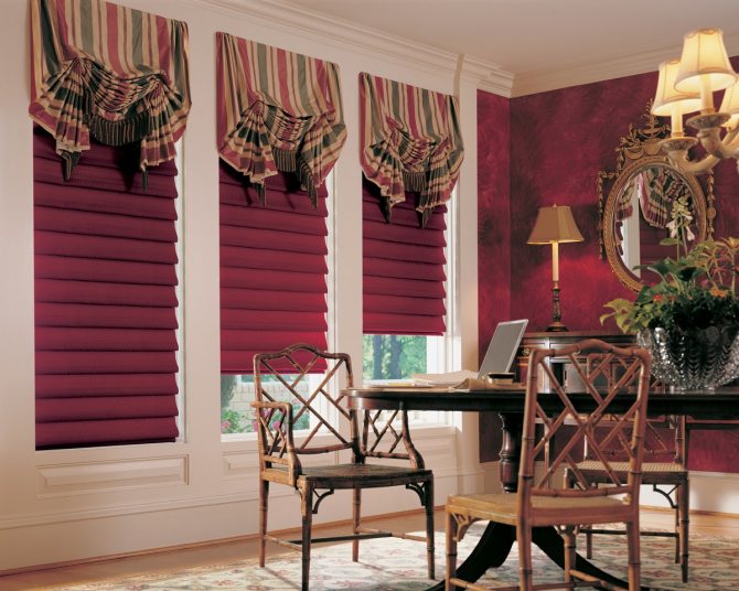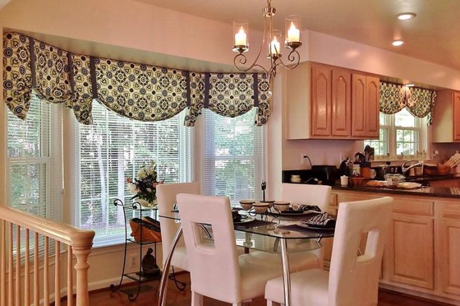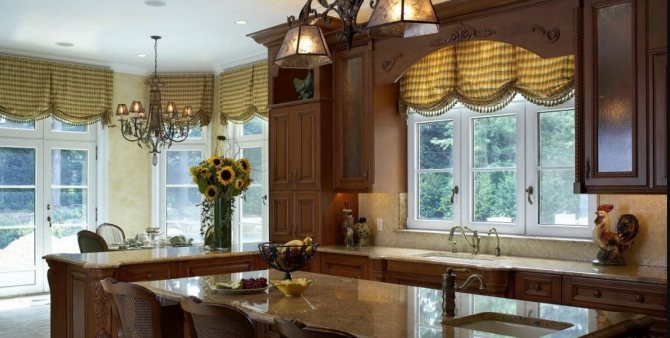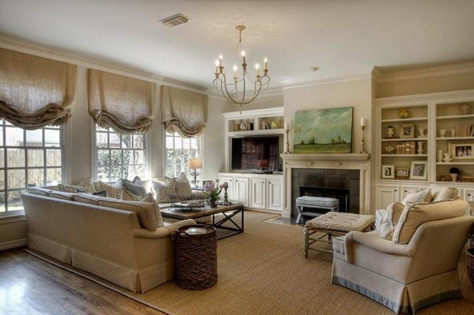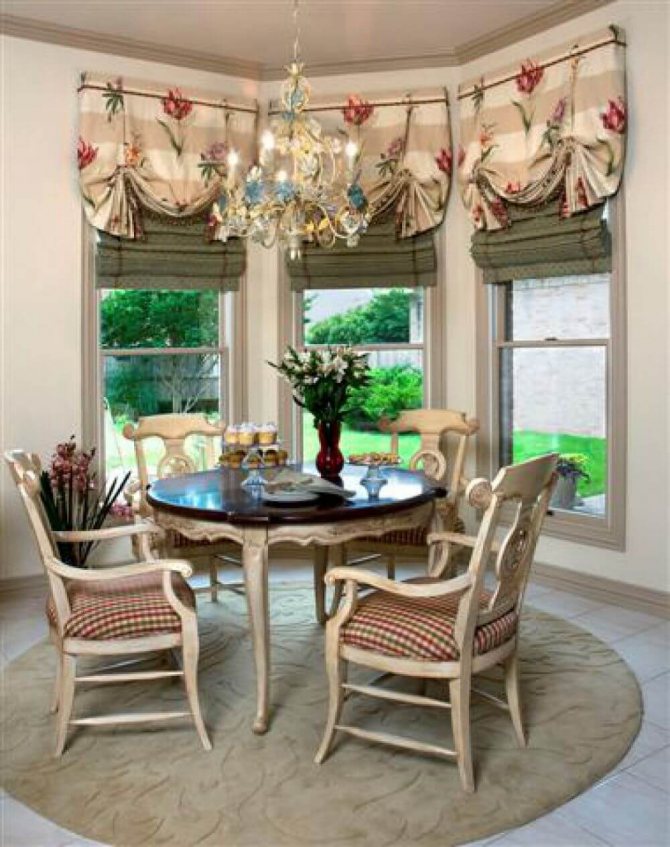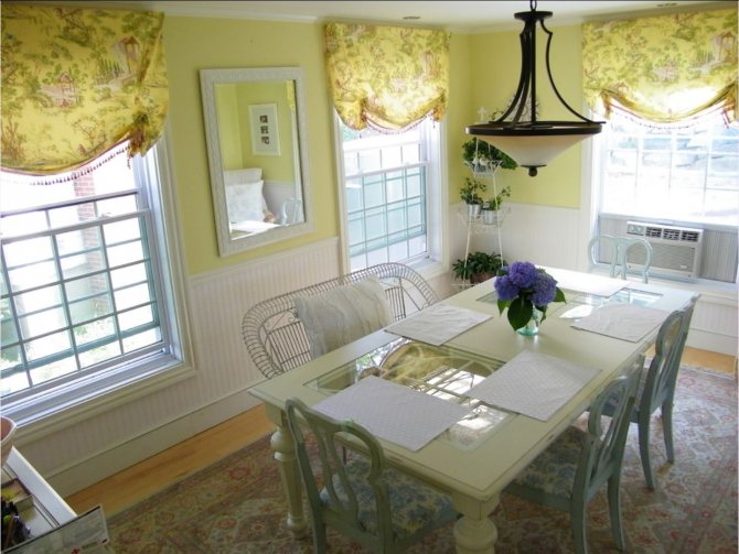 Comme déjà noté, le décor des fenêtres dans l'esprit anglais peut avoir de nombreuses options. Les caractéristiques du choix du tissu et d'un modèle spécifique dépendent de la géométrie de la fenêtre et de la pièce elle-même, ainsi que de son style général.