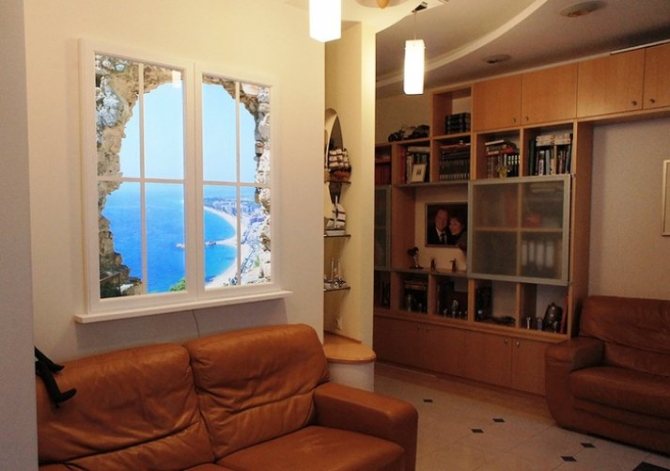 L'imitation de fenêtres avec du papier peint photo est le moyen le plus simple et le moins cher de transformer un intérieur.