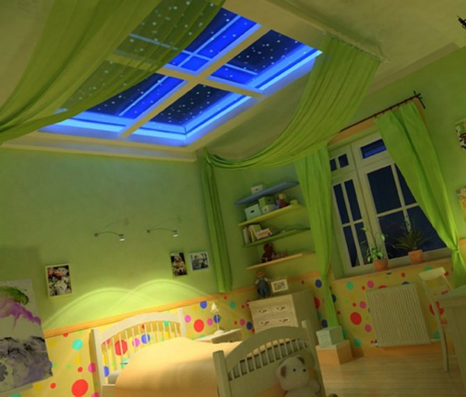 Il existe de nombreuses options pour imiter les ouvertures de fenêtres, à la fois au mur et au plafond. Considérons les plus populaires.
