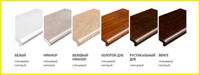 Tous les appuis de fenêtre en plastique à base de PVC, tels que «Moeller», «FineDek», «People's Plastic», «Stained Glass», «Danke», «Crystalit», «Montblanc», également de la série d'appuis de fenêtre à base de panneaux de particules "Werzalit" ...