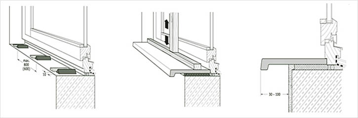 Fonctionnement, données supplémentaires sur les appuis de fenêtre