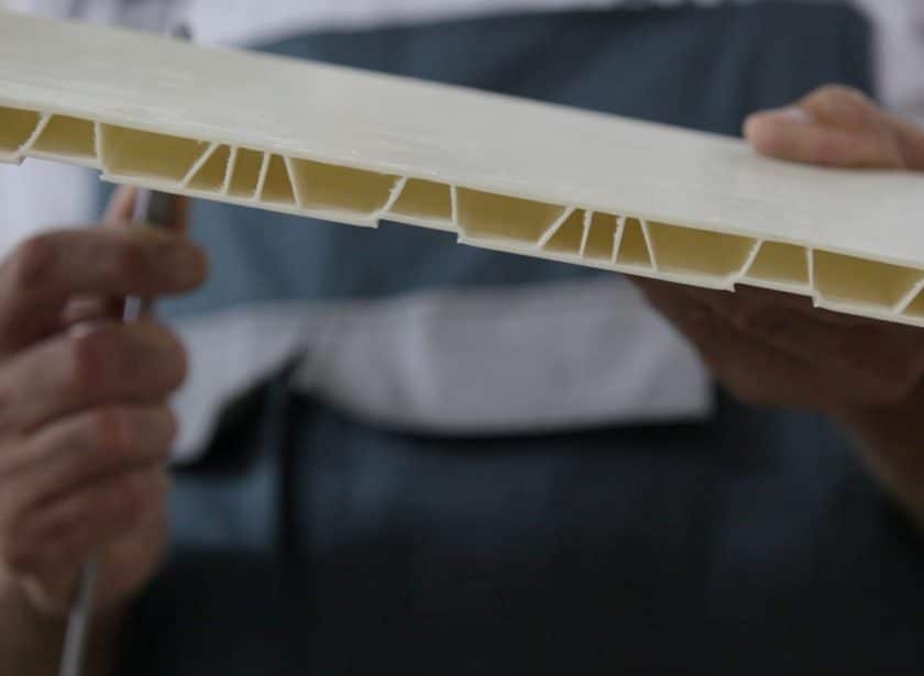 - La partie intérieure du panneau de seuil est remplie de raidisseurs qui agissent comme des supports et fournissent une résistance mécanique... La qualité des produits dépend du nombre de nervures, par conséquent, plus il y en a, plus l'indicateur de rigidité est élevé, ce qui signifie que la planche peut supporter de lourdes charges et ne pas se déformer.